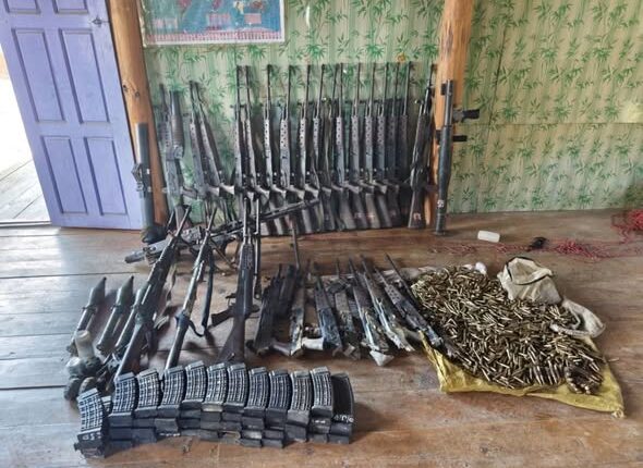 “လက်နက်မျိုးစုံ ၃၃ လက် သိမ်းဆည်းရမိခဲ့ပါတယ်။ ပြီးတော့ ကျည်ဆံ ၅,၀၅၆ ထောင့်၊ M-79 ကျည် ဗုံးသီး ၄၈ လုံးလည်း သိမ်းဆည်းရတယ်။ ရိက္ခာခြောက်တွေလည်းပါတယ်။” လို့ ရှေ့တန်းစစ်ရေးသတင်းမြစ်က ရွှေဖီမြေသို့ ပြောပါတယ်။
