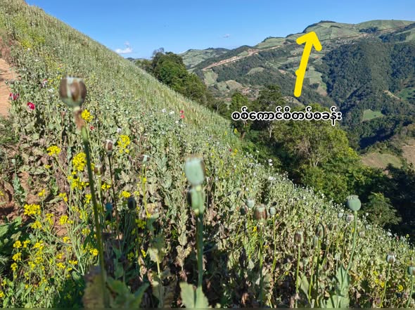 ဒါပေမယ့် မြန်မာနိုင်ငံမှာတော့ လှပတဲ့ ဘိန်းစိုက်ခင်းတွေဟာ လည်ပတ်သွားစရာနေရာတစ်ခုလိုဖြစ်နေပြီး နိုင်ငံကို အုပ်ချုပ်နေတဲ့ စစ်ကောင်စီတပ်ကပင် အဲလုပ်ငန်းမှာ ပါဝင်ပတ်သတ်နေကြောင်းပါခဗျား….