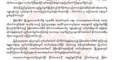 စစ်နဲ့မဆိုင်တဲ့ အရပ်သားလူထုအပေါ် ပစ်မှတ်ထားပြီးလေကြောင်းကနေ ဗုံးကြဲတိုက်ခိုက်နေတဲ့ စစ်ကောင်စီလုပ်ရပ်ကို ရပ်တန့်ဖို့ တရုတ်အပါအဝင် နိုင်ငံတကာက ကူညီဆောင်ရွက်ပေးဖို့ TNLA တောင်းဆို၊ ကျဆုံးလုနီးဖြစ်နေတဲ့ စစ်အာဏာရှင်ကို ဝိုင်းဝန်းတိုက်ခိုက်ကြရန် တိုက်တွန်း