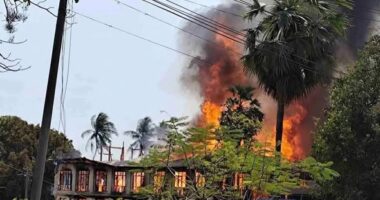 မြောင်မှာ စစ်ကောင်စီတပ် ထပ်မံ ဗုံးကြဲလို့ အရပ်သား ၅ ဦး သေဆုံးပြီး နေအိမ် ၅၀ ကျော် မီးလောင်ပျက်စီး