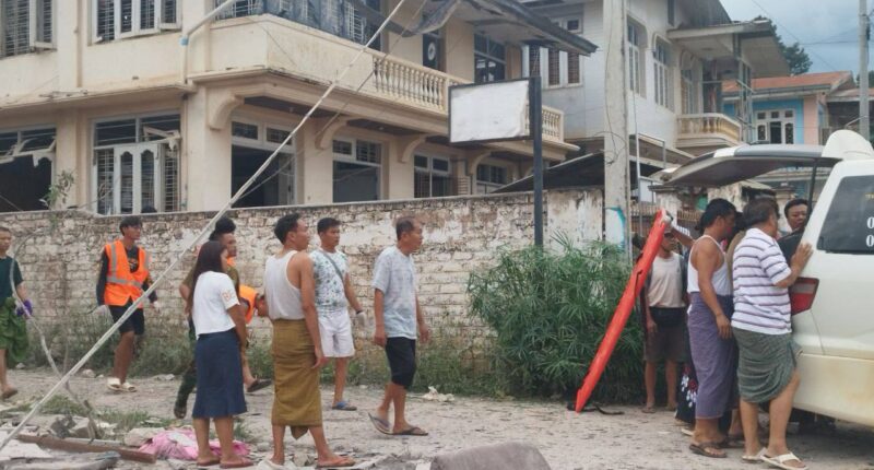 The junta’s airstrike into a crowded area in Kyaukme Town, northern Shan State, on Tuesday killed at least 4 people, including a mother and her son, and injured 14 others, including displaced people from Nawnghkio, according to residents.