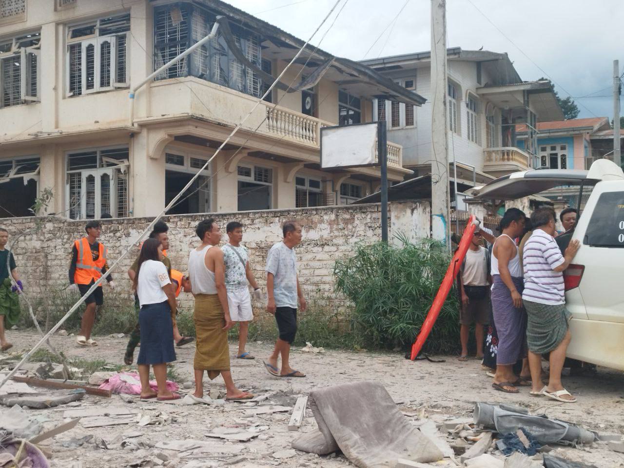 A junta aircraft dropped two bombs into a crowded area in Kyaukme on Tuesday around 5 p.m., near a mosque and a fried rice shop. The attack killed Daw Hla Yee (60), Waw Waw a.k.a Thiha Naing (22), Daw Hla Hla Htwe (53), and Daw Hla Tin (55).