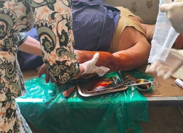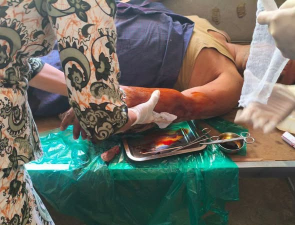 “အရပ်သား ၂ ဦး ထိခိုက်သွားတယ်။ ဦး‌အောင်သန်းလင်းက လက်ကျိုးသွားတယ်။ ဦးသက်အောင်က ခေါင်းပေါက်သွားတယ်”