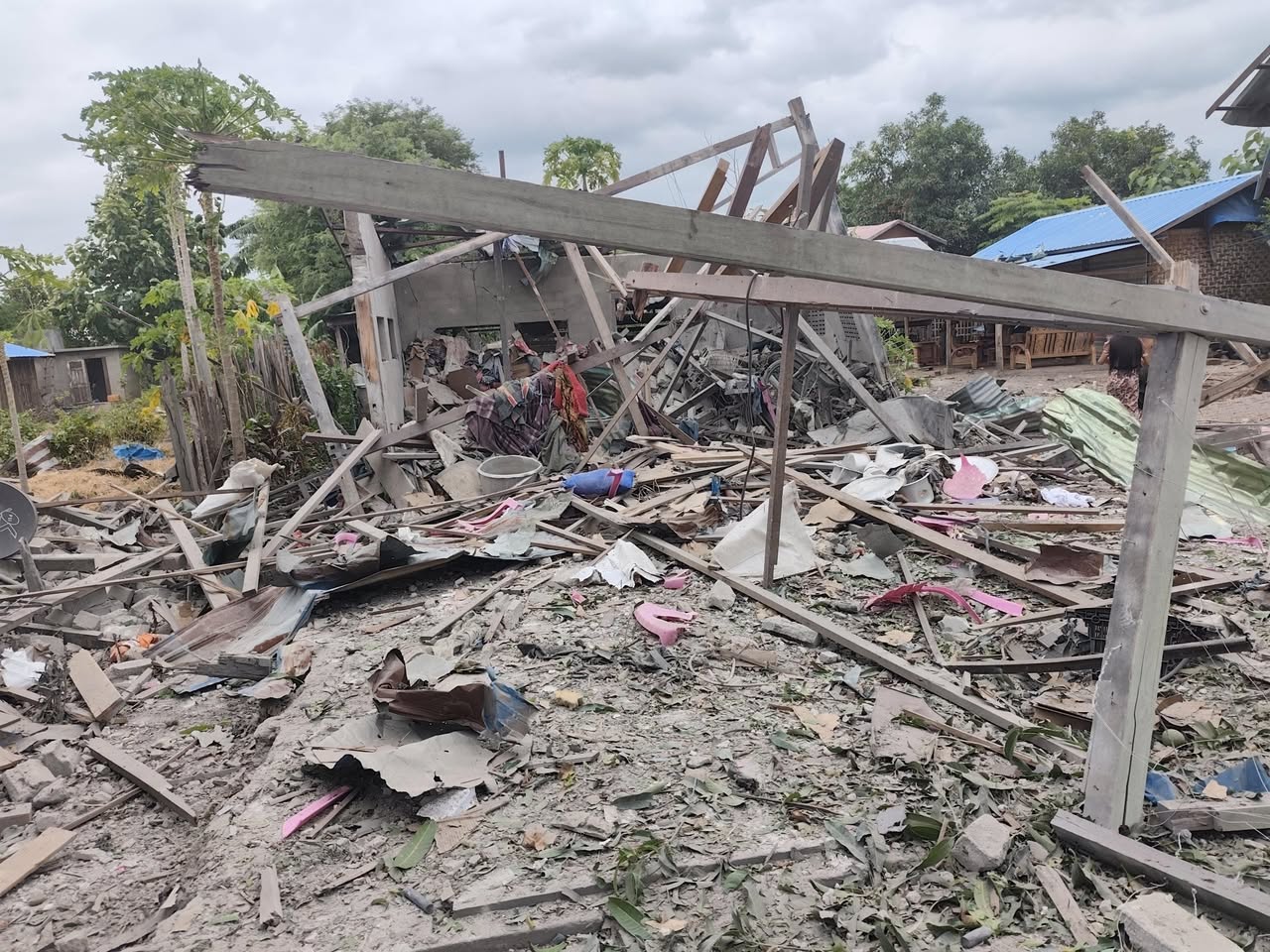စစ်ကောင်စီတပ်ရဲ့ လေကြောင်းတိုက်ခိုက်မှုကြောင့် သေဆုံးသွားတဲ့ အမျိုးသမီးဟာ အပိုင်းအစတွေ ဖြစ်ကုန်ပြီး နေအိမ် ၃ လုံးလည်း ပျက်စီးခဲ့တယ်လို့ ပြင်ဦးလွင်ခရိုင်ပကဖက ဆိုပါတယ်။