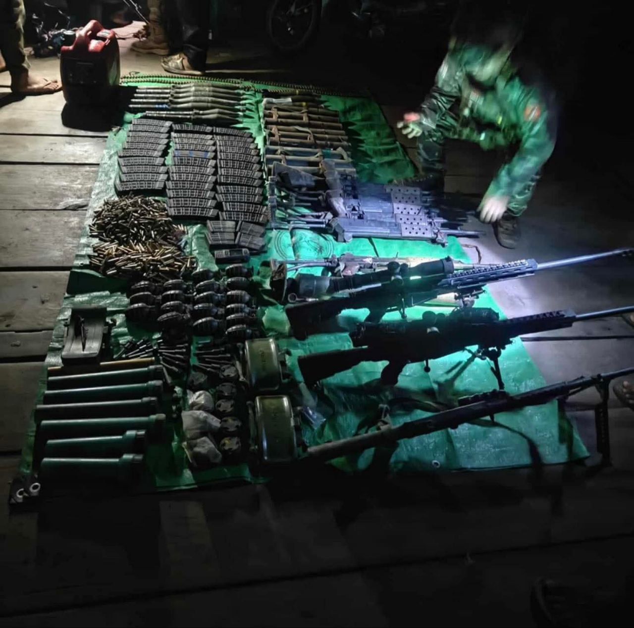 သိမ်းဆည်းရမိတဲ့ လက်နက်ခဲယမ်းတွေဟာ MA 3 သေနတ်၊ စနှိုက်ဘာ၊ လက်ပစ်ဗုံး၊ ကျည်မျိုးစုံ၊ ကျည်ပေါက်၊ မိုင်းမျိုးစုံ၊ အီနာဂါဗုံးသီးတို့ ဖြစ်ပါတယ်။