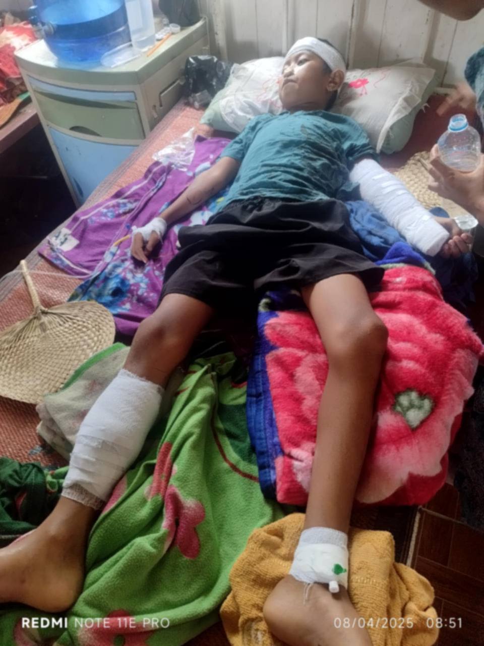 ဒဏ်ရာရရှိတဲ့ ကလေးငယ်တွေတော့ အသက် ၄ နှစ်အရွယ် မောင်ဖြိုးငြိမ်းနိုင်၊ အသက် ၁၁ နှစ်ဝန်းကျင်အရွယ် မောင်ကောင်းမြတ်ထက်၊ မောင်မျိုးဝင်းဦးနဲ့ မောင်ခိုင်ငြိမ်းဇော် ဖြစ်ပါတယ်။