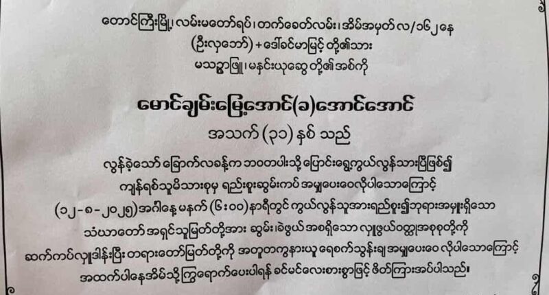 ရှမ်းတောင် တောင်ကြီးမြို့ လမ်းမတော်ရပ်ကွက်မှာ စစ်မူထမ်း အပတ်စဉ် (၁) မှာ အတင်းအဓမ္မ ခေါ်သွားခံရသူ တစ်ဦး ရှေ့တန်းမှာ သေဆုံးပြီး မိသားစုထံ ၆ လအကြာမှ အကြောင်းကြားလာခဲ့တယ်လို့ တောင်ကြီးဒေသခံ အမျိုးသားတစ်ဦးက ပြောပါတယ်။