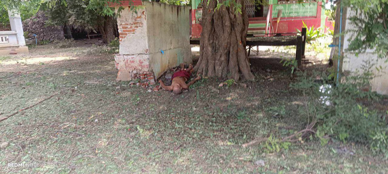 “စစ်တပ်လေထီး ၃စီးနဲ့ ၄လုံး လာပစ်တာ။၂လုံးကဘုန်းကြီးကျောင်း ပစ်တာ။၂လုံးက တောထဲ ပစ်တာ။ ဘုန်းကြီးကျောင်းက ပျက်စီးပြီး ကိုရင်ကြီးတစ်ပါး ဗုံးထိမှန်ပြီး ခဏအကြာမှာ ပျံတော်မူတာ” လို့ ပြောပါတယ်။