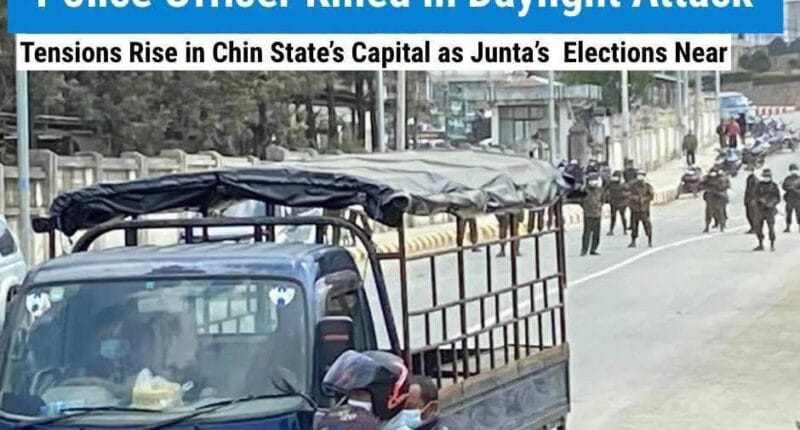 ချင်းပြည်နယ် ဟားခါးမြို့လယ်မှာ ဒီနေ့ သြဂုတ် ၇ ရက် နေ့လယ် ၁၁ နာရီခန့်မှာ စစ်ကောင်စီ လက်အောက်ခံ ရဲတပ်ဖွဲ့ဝင် လိုက်ပါစီးနင်းလာတဲ့ ကားတစ်စီး တိုက်ခိုက်ခံရပြီး ရဲအရာရှိတစ်ဦး သေဆုံးခဲ့တယ်လို့ ဒေသခံတွေဆီက သိရပါတယ်။