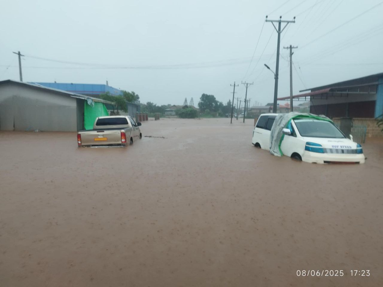 နောင်ပိန်ကျေးရွာ ရပ်ကွက် ၅ မှာရှိတဲ့ ရွှေလမင်း ဆီဆိုင်ရှေ့က ဖြတ်မောင်းလာတဲ့ ကားတစ်စီးလည်း ရေနဲ့အတူ မျှောပါသွားခဲ့တယ်လို့ ပြောပါတယ်။
