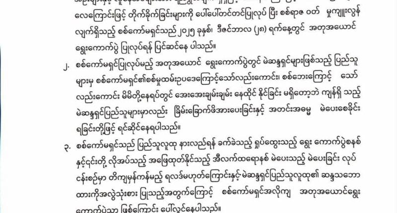 စစ်ကောင်စီက ၂၀၂၅ ခုနှစ် ဒီဇင်ဘာ ၂၈ ရက်မှာ ရွေးကောက်ပွဲ ကျင်းပပြုလုပ်သွားမှာဖြစ်ပြီး ၎င်းထိန်းချုပ်တဲ့ မြို့နယ်တွေမှာ မဲဆွယ်စည်းရုံးတဲ့လုပ်ငန်းတွေ စတင်ပြုလုပ်လာတာနဲ့ လူထုတွေကို မဲပေးဖို့ အတင်းအဓမ္မခိုင်းစေတာတွေ ပြုလုပ်နေတာရှိပါတယ်။