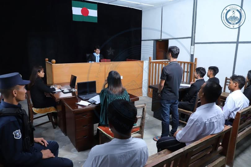 PSLF/TNLA ရဲ့ တရားစီရင်ရေးဌာနက ၂၀၂၆ ခုနှစ် မတ်လ ၂၇ ရက်မှာတစ်ကြိမ်၊ မတ်လ ၃၀ ရက်မှာတစ်ကြိမ်နဲ့ ဧပြီ ၃ ရက်မှာတစ်ကြိမ် ရုံးချိန်း စစ်ဆေးခဲ့ပြီး ပြစ်မှု ထင်ရှားကြောင်း အတည်ပြုခဲ့ပြီးနောက် ပြစ်မှုကျူးလွန်သူကို ရာဇသတ်ကြီးဥပဒေ ပုဒ်မ (၃၇၆)အရ အလုပ်ကြမ်းနဲ့ ထောင်ဒဏ် ၁၀ နှစ်အပြင် ငွေဒဏ်လည်း ချမှတ်ခဲ့တယ်လို့ ထုတ်ပြန်ထားပါတယ်။