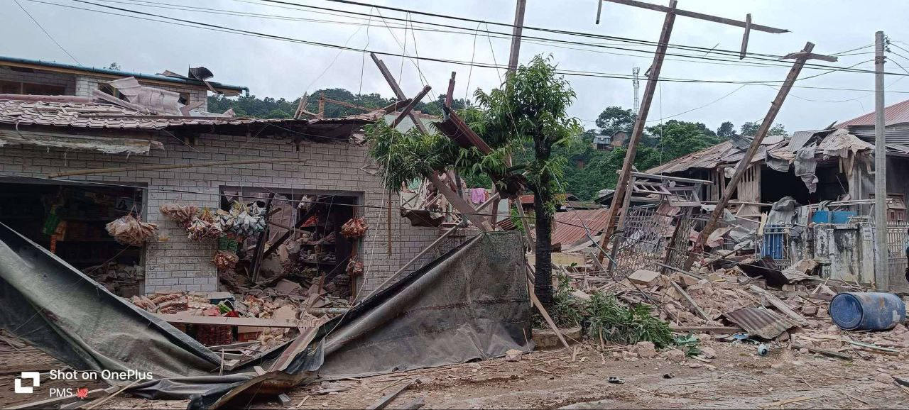 စစ်ကောင်စီတပ်ဟာ လူစည်ကားရာနေရာဖြစ်တဲ့ စည်ပင်သာယာရေးရုံးနဲ့ ဈေးသစ်အနီးဝန်းကျင်မှာ ဂျက်‌လေယာဉ်နဲ့ ပေါင် ၂၅၀ ဗုံး နှစ်လုံး လာရောက်ကြဲချ တိုက်ခိုက်ခဲ့တာ ဖြစ်ပါတယ်။
