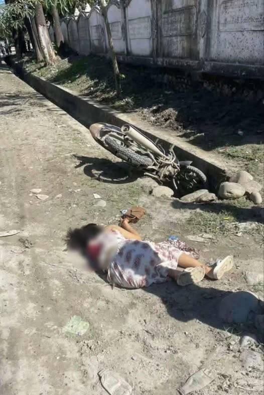ဆိုင်ကယ်နဲ့ စစ်တပ်ရဲ့ကားနောက် ကပ်ပါလာတဲ့ အမျိုးသမီးဟာ အသက် ၂၀ အရွယ် ရှိပြီဖြစ်တယ်လို့ သိရပါတယ်။