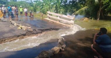 ကြက်မောက်တောင်ဆည် ရေကြီးရေလျှံမှုကြောင့် မိတ္ထီလာ-ကျောက်ပန်းတောင်း ကားလမ်းပေါ်က ကိုင်းတံတား ကျိုးကျပျက်စီးခဲ့တဲ့အတွက် လမ်းပိတ်ဆို့မှု ဆက်ရှိနေသေးတယ်လို့ ကျောက်ပန်းတောင်းမြို့ခံတွေက ရွှေဖီမြေကို ပြောပါတယ်။
